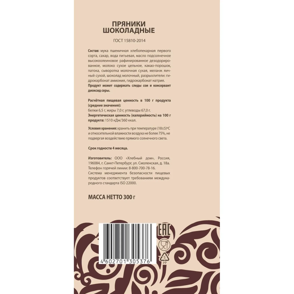 Пряники Хлебный Дом шоколадные узоры, 300г