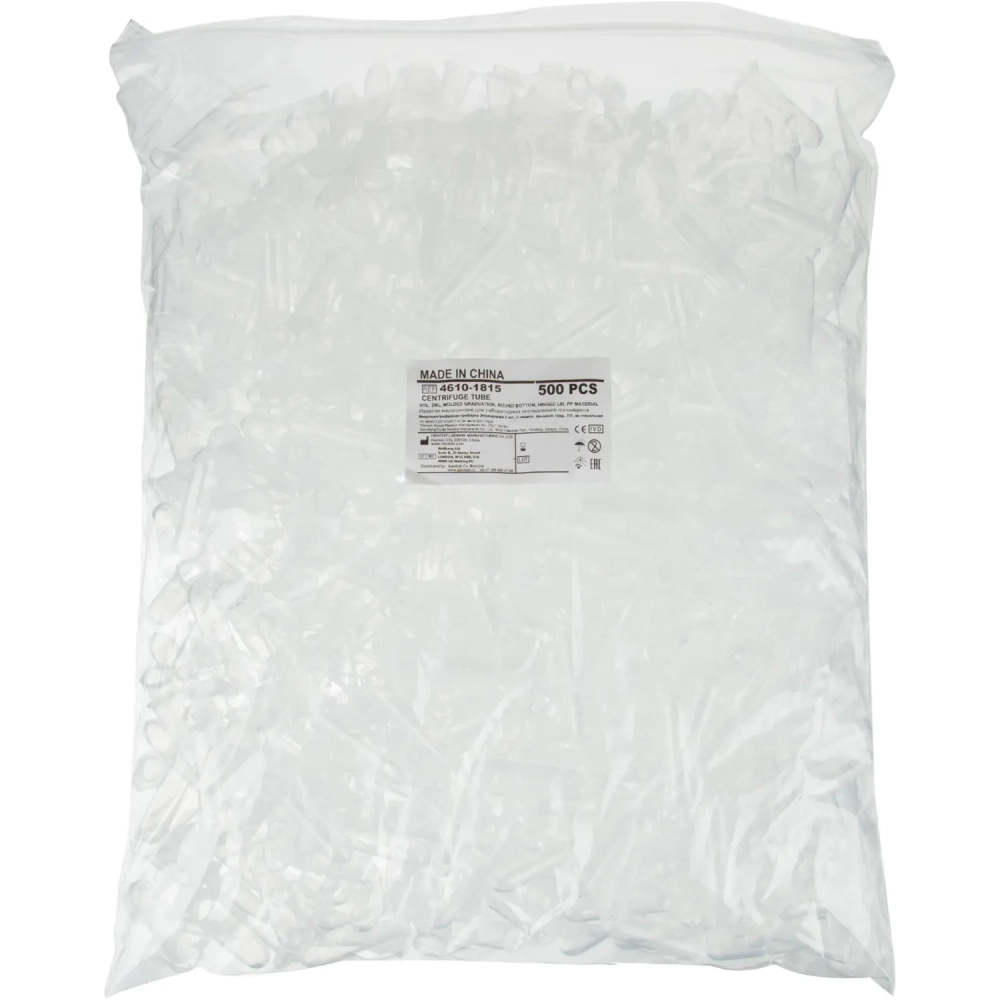 Пробирка цилиндрическая 2мл, ПП, градуированная, крышка, 500 шт/уп
