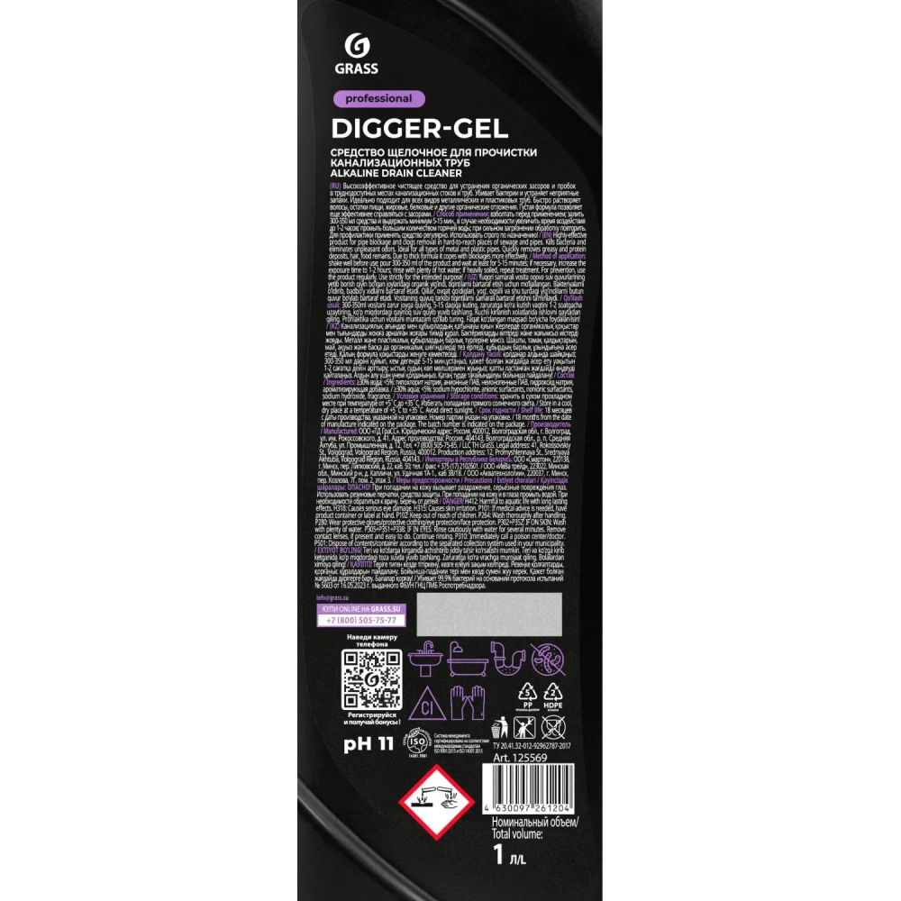 Профхим д/прочистки труб и стоков, гель Grass/Digger-Gel PROF 1л