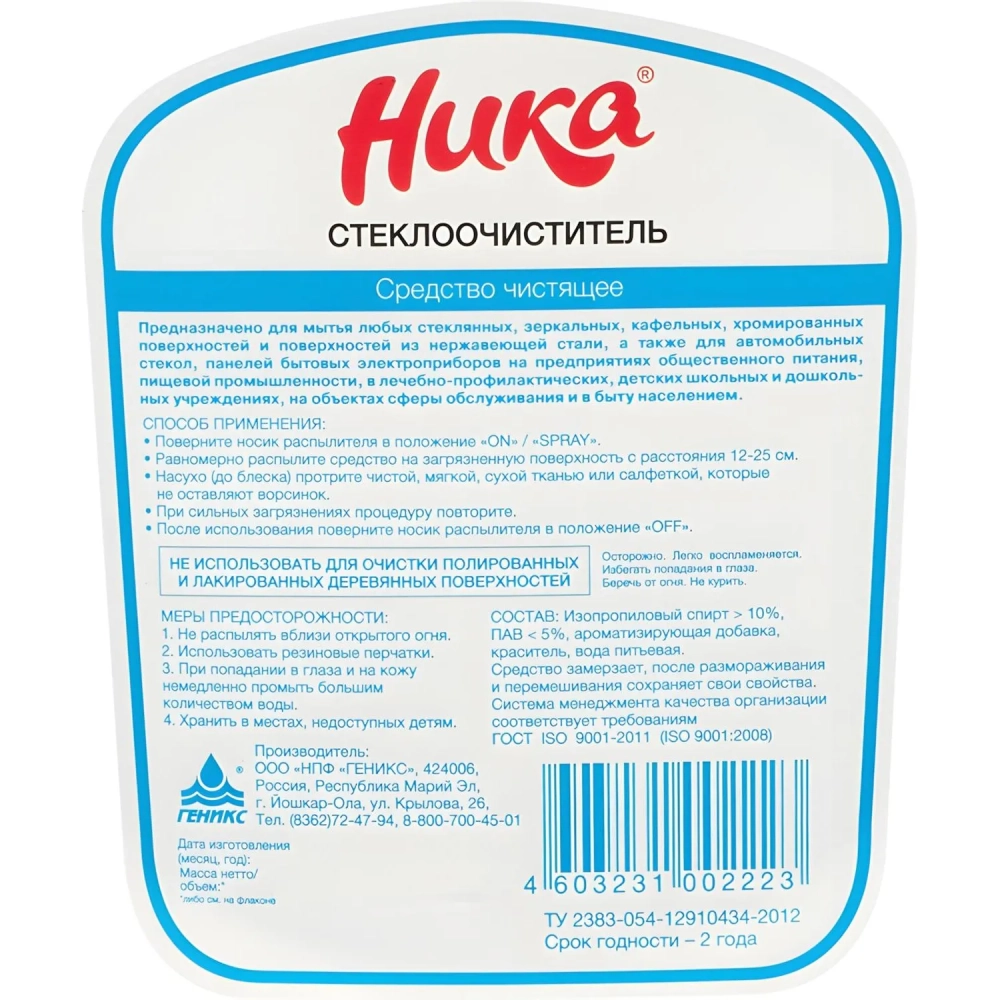 Профхим д/стекл-зеркал поверхн,очистка Ника/Стеклоочиститель, 0,75л_т/р
