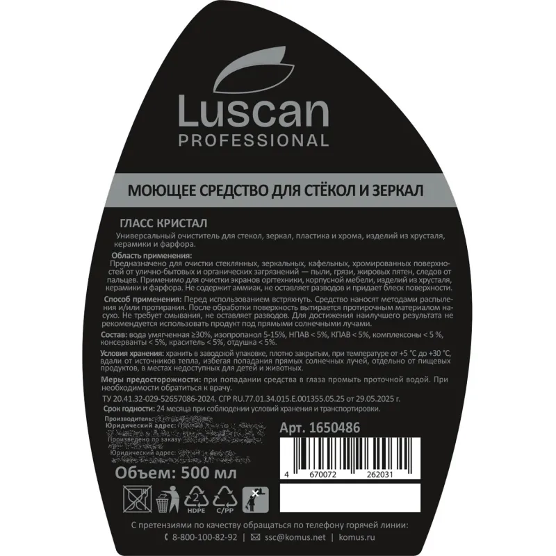 Профхим д/стекл-зеркал поверхностейLuscan Prof/Glass Crystal, 0,5л_т/р