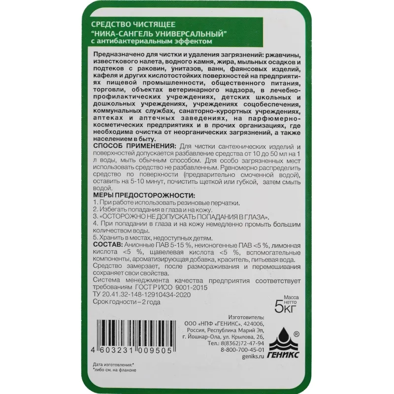 Профхим сантех чист с антибак-эфф Ника/Ника-Сангель универсальный, 5кг