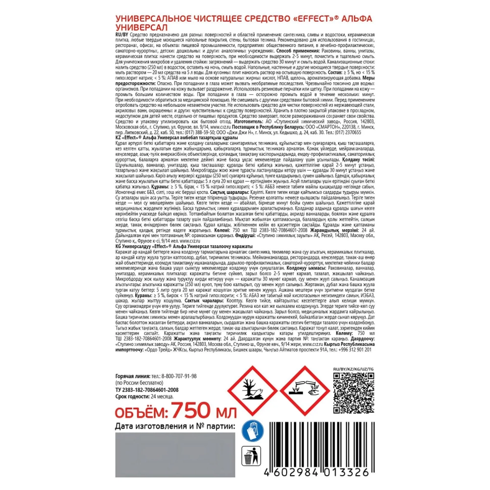 Профхим сантех щел д/уборки и сантехники Effect/ALFA 106, 0,75л