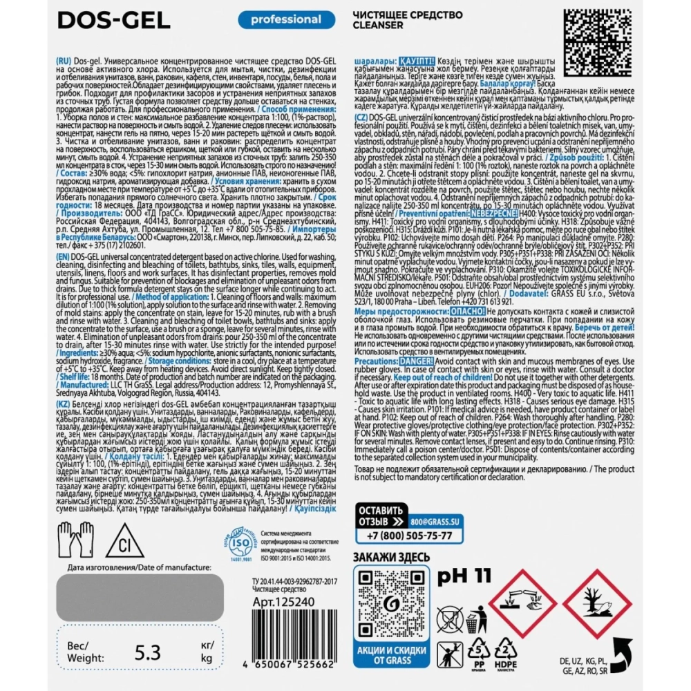 Профхим сантех щел гель с отбел/дез-эфф, с ХЛОР Grass/DOS GEL 5,3кг