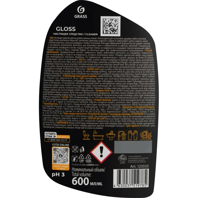 Профхим сантех сл/кисл д/деликат мытья акрил-мет Grass/Gloss PROF, 0,6л_т/р