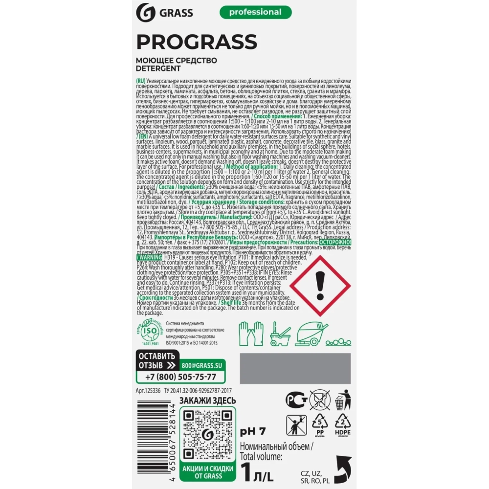 Профхим универсал нейтрал арома. д/поверхн и пола Grass/Prograss,1л