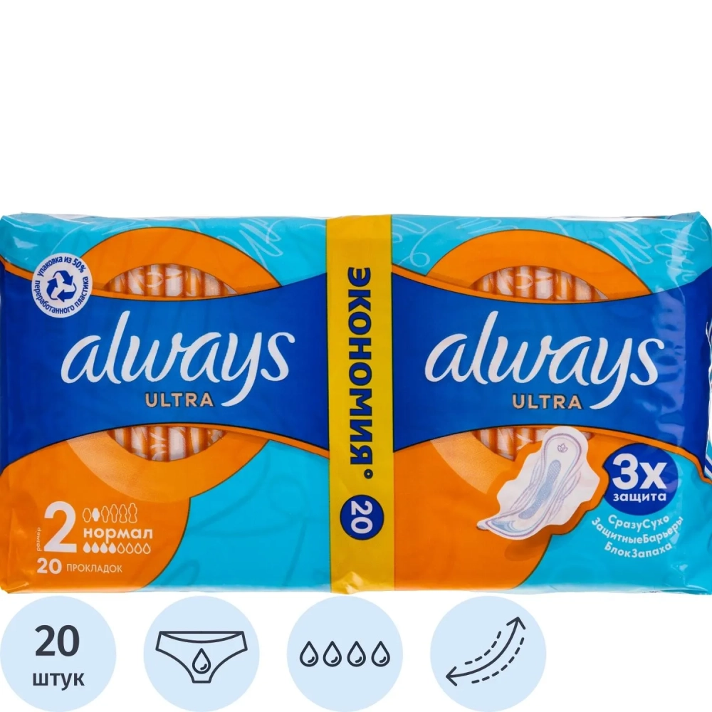 Прокладки женские гигиенические ALWAYS Ultra Normal Plus Duo 20шт