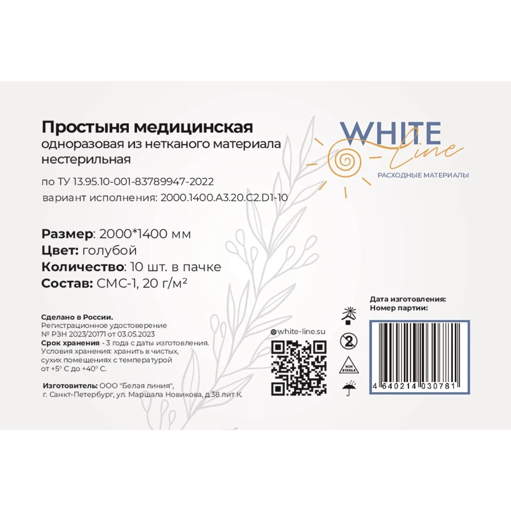 Простыня 140х200, голубой (10шт/упак), SMS, пл.20, А3, 12668