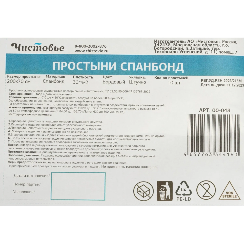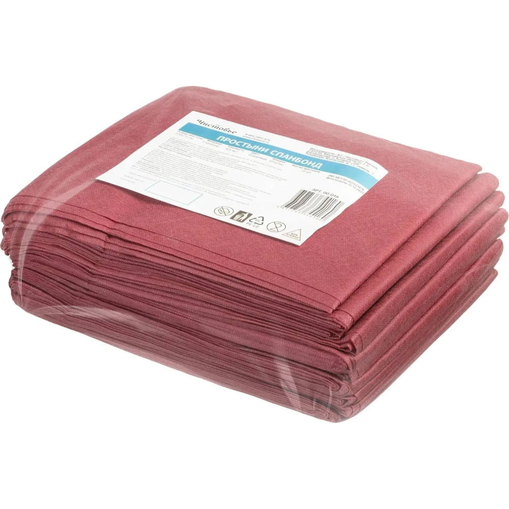 Простыня 200x70, спанбонд, пл.30, бордо, 10шт/уп, штучно, 00-048