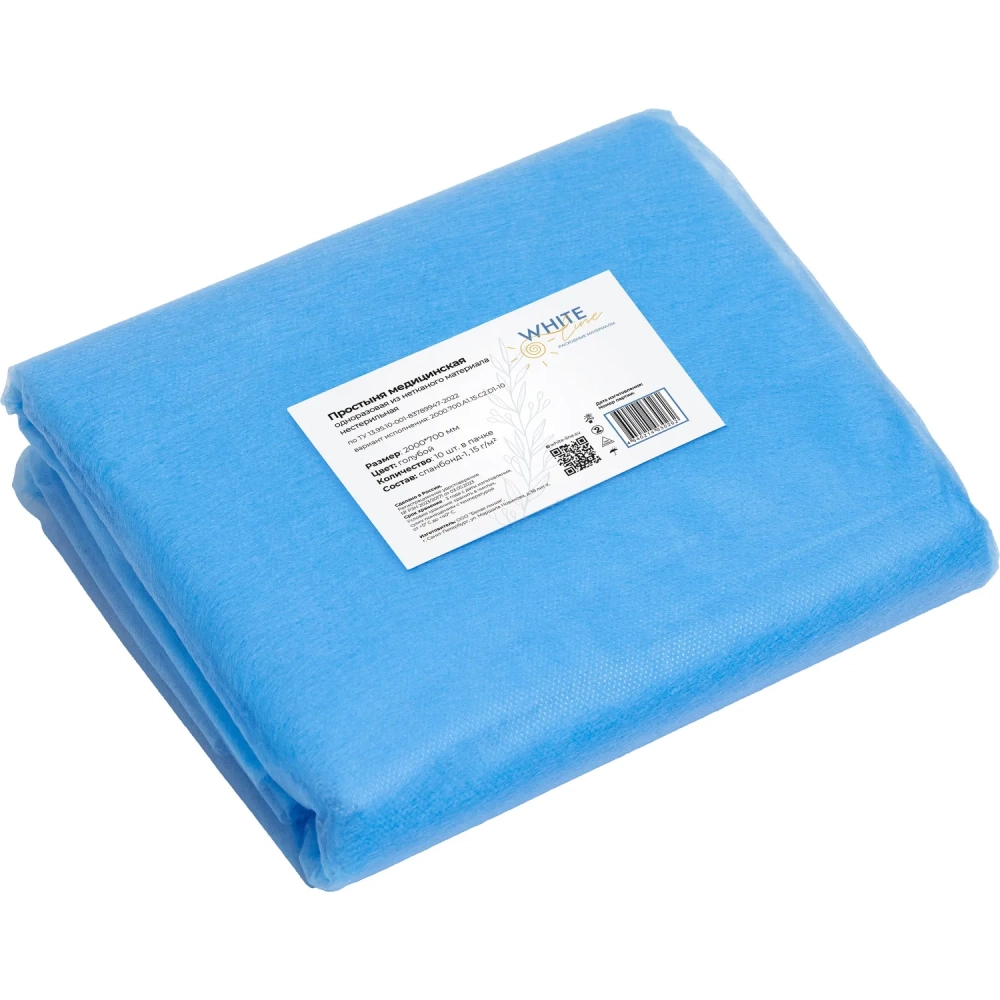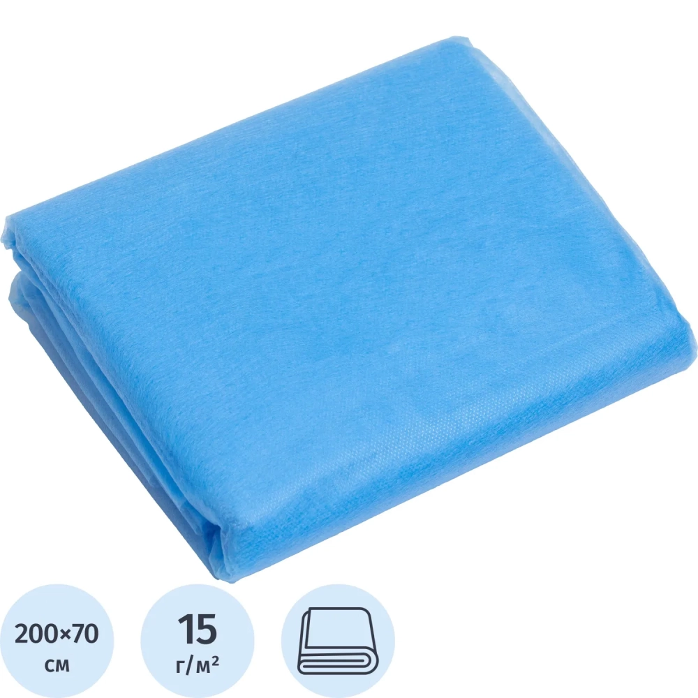 Простыня 70х200, голубой (10шт/упак), спанбонд, пл.15, А1, 12548