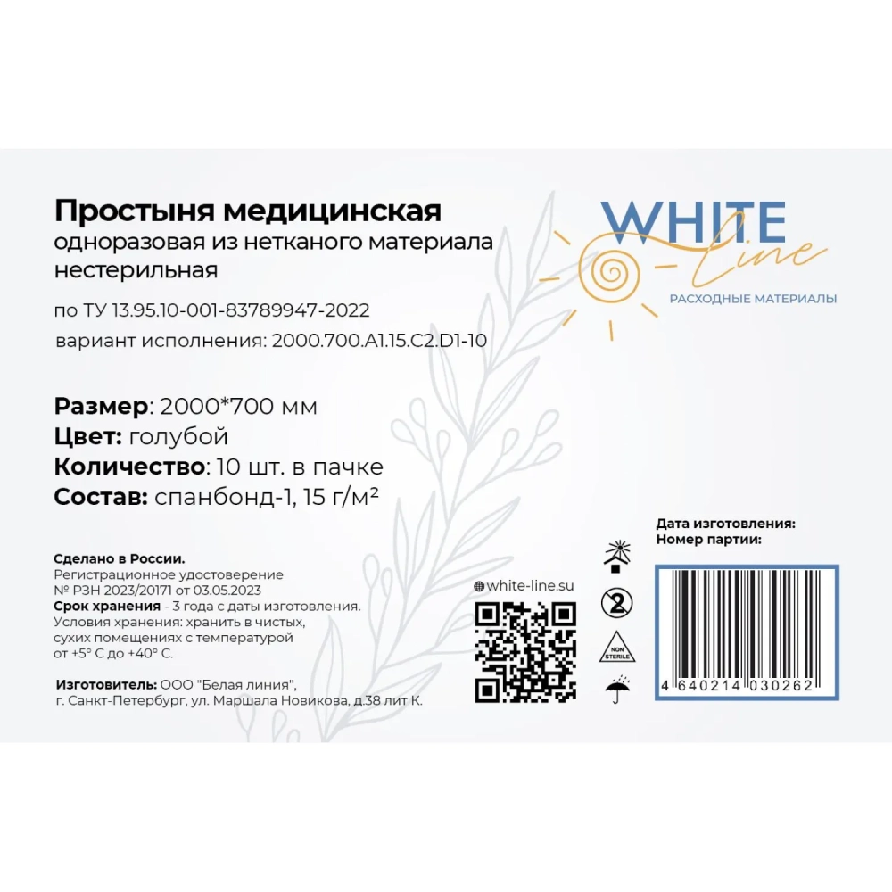 Простыня 70х200, голубой (10шт/упак), спанбонд, пл.15, А1, 12548