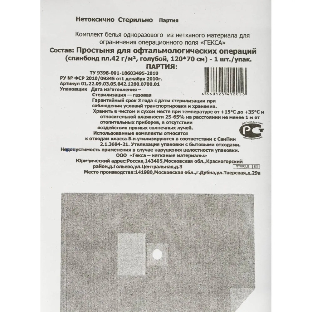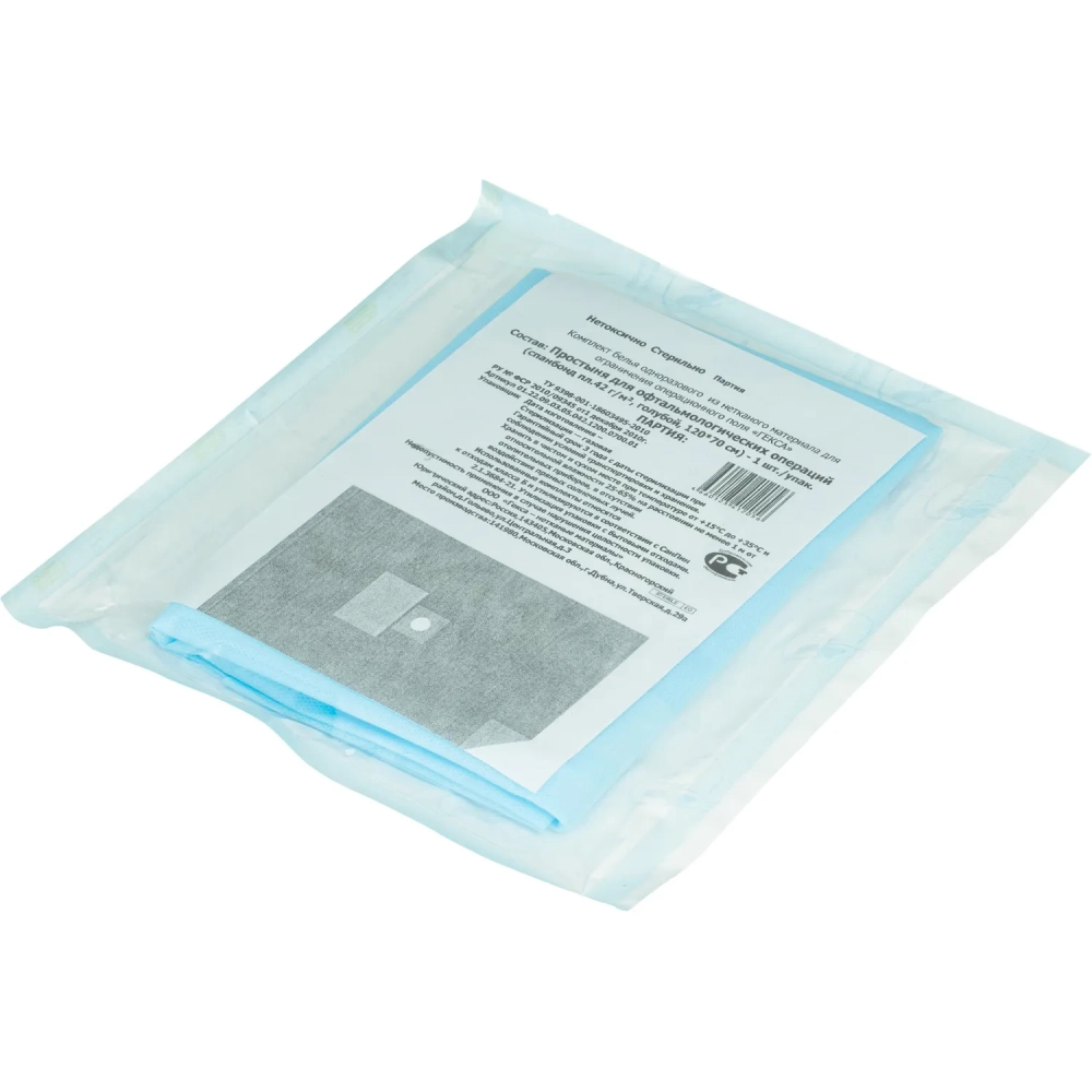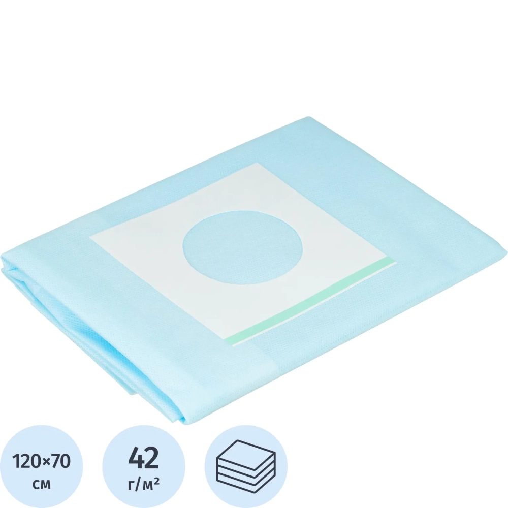 Простыня стерил. 1200х700 пл.42 с кругл.отв. №1 для офтальм., Гекса