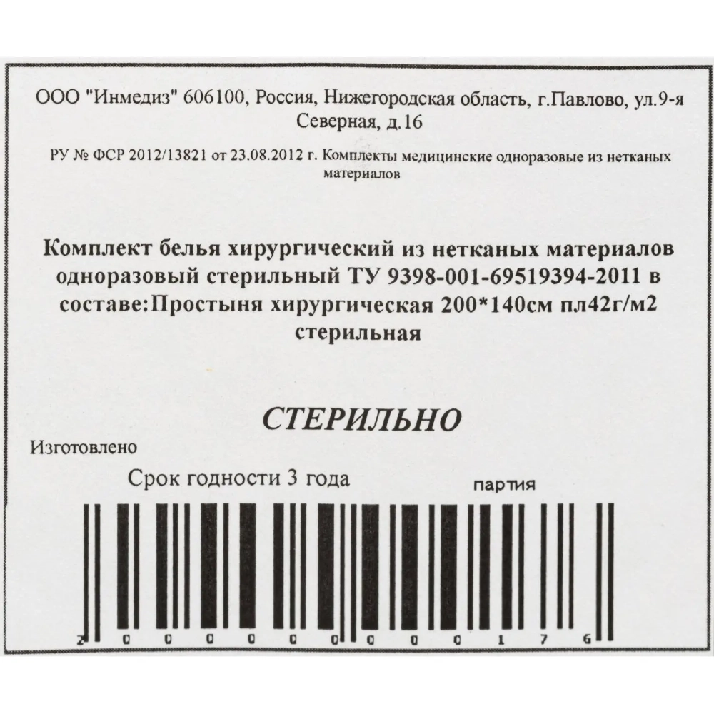 Простыня стерил. 200x140 сммс пл.40-42Инмедиз