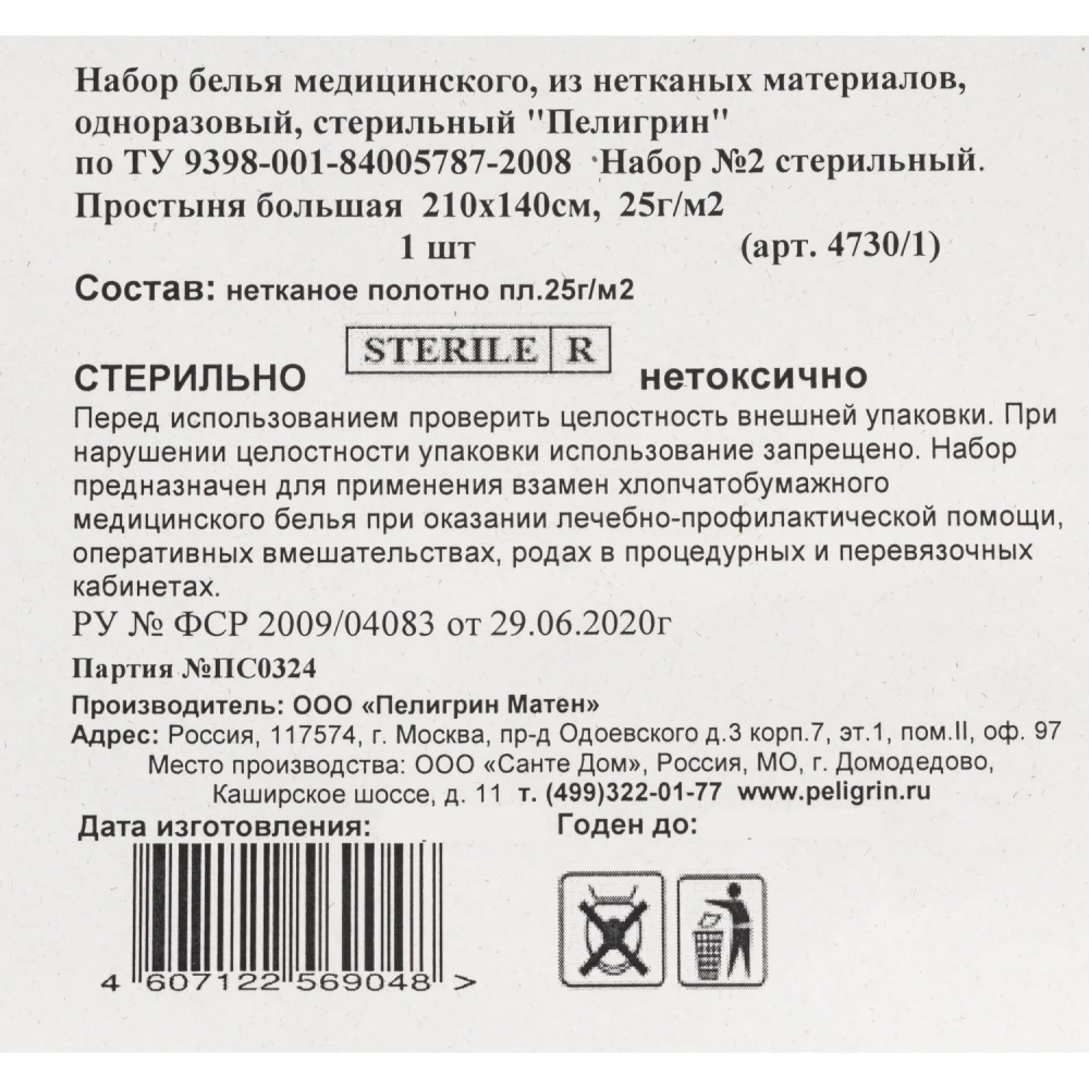 Простыня стерил. 210x140см спанбонд пл.25, голубой, 1шт, 4730/1