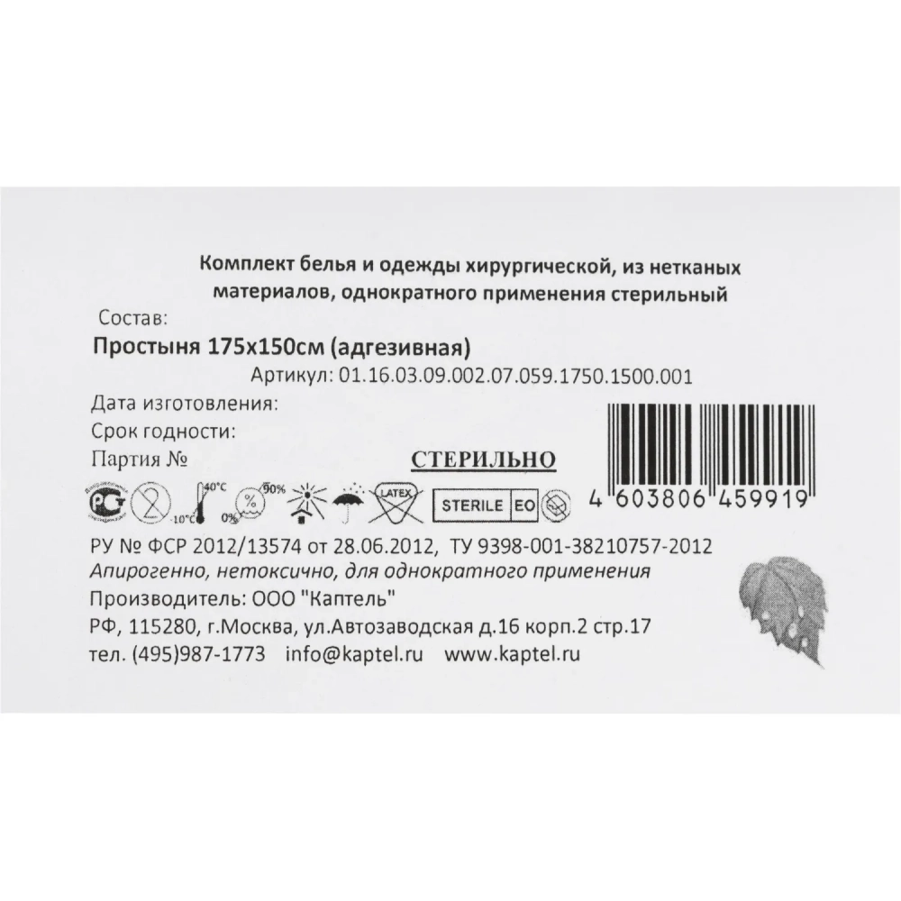 Простыня стерил, адгез, 175x150см, пл.59, 1шт./уп