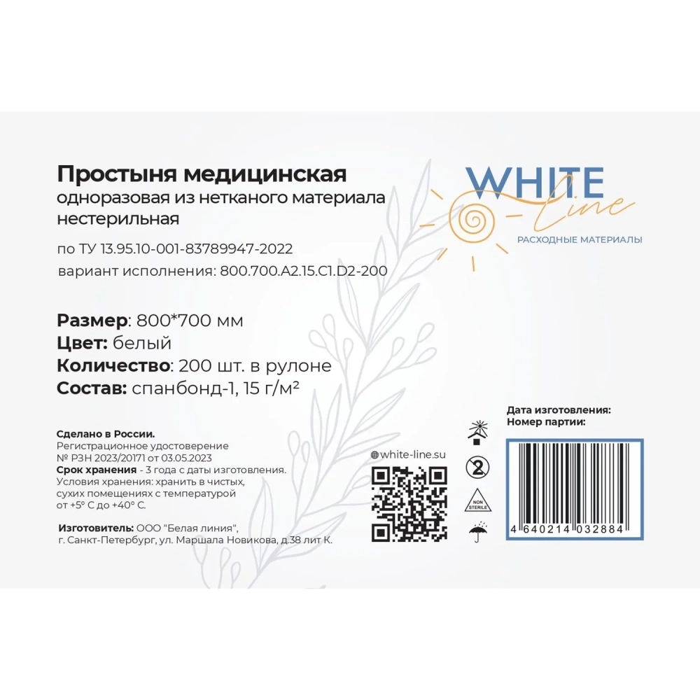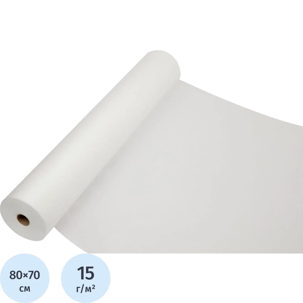 Простыня в рулоне 70х80, белый (200шт/рул), пл.15, спанбонд