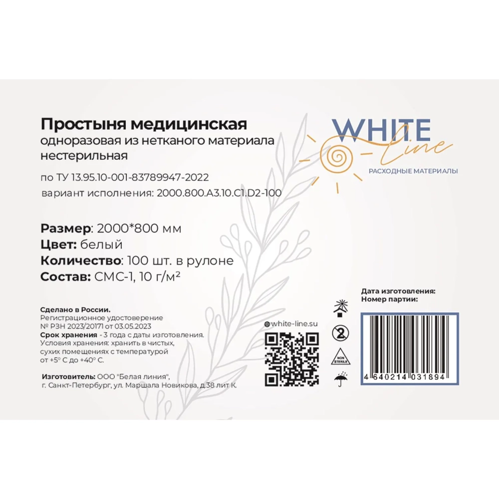 Простыня в рулоне 80х200, белый (100шт/рул), SMS, пл.10, А3, 13075