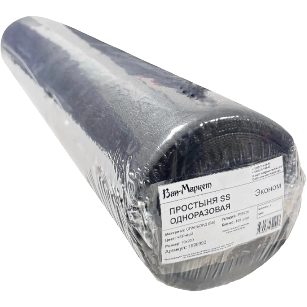 Простыня в рулоне с перф., 70х200, черный, 100шт/рул, спанбонд, Эконом