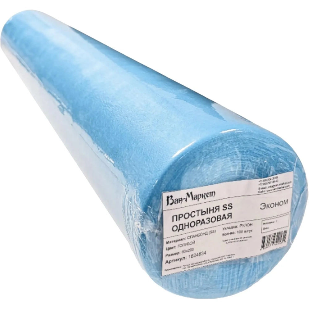 Простыня в рулоне с перф. н/с 80х200 голуб. 100шт/рул спанбонд Эконом