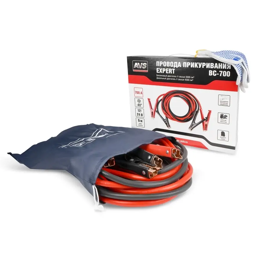 Провода прикуривания AVS "BC-700" предназначены для пуска двигателя автомобиля с разряженной аккумуляторной батареей от аккумулятора другого автомобиля.