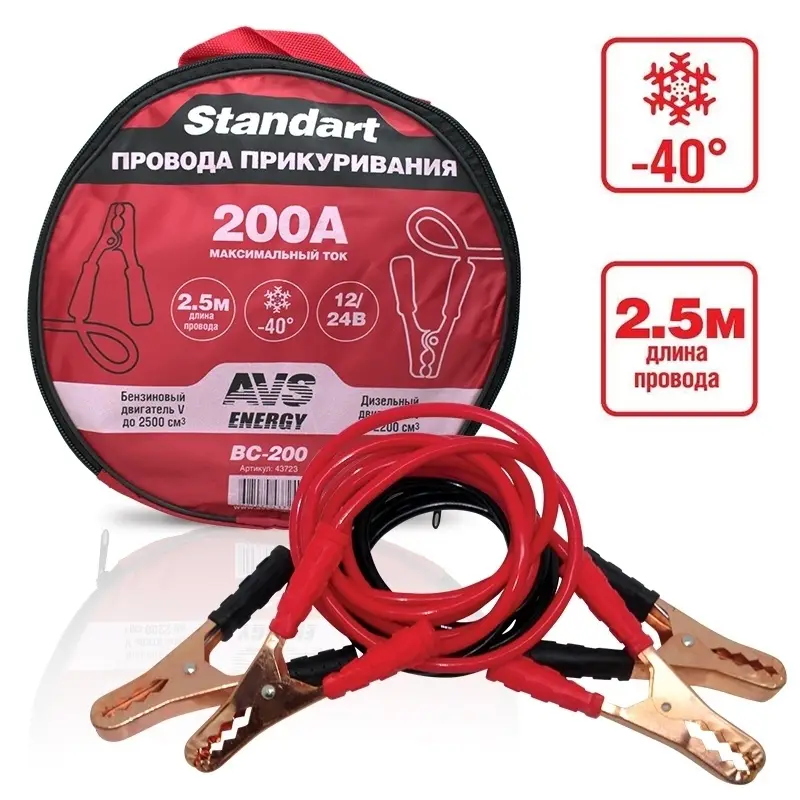 Провода прикуривания AVS Standart BC-200 (2,5 метра) 200А