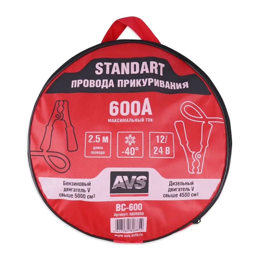Провода прикуривания AVS "BC-600" предназначены для пуска двигателя автомобиля с разряженной аккумуляторной батареей от аккумулятора другого автомобиля.