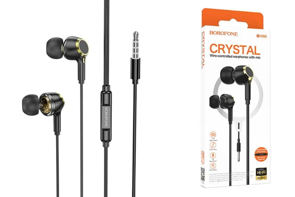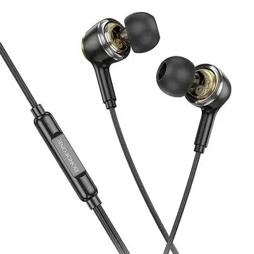 Наушники проводные BOROFONE BM90 Miller с закрытой акустикой выдают чистый и громкий звук на всех диапазонах. Внутриканальная модель с эластичными силиконовыми амбушюрами плотно прилегает к ушным раковинам и не причиняет неудобств при долгом ношении. Встроенный микрофон позволяет отвечать на звонки и общаться по сети. Длины кабеля 1.2 м хватает для подключения наушников к порту