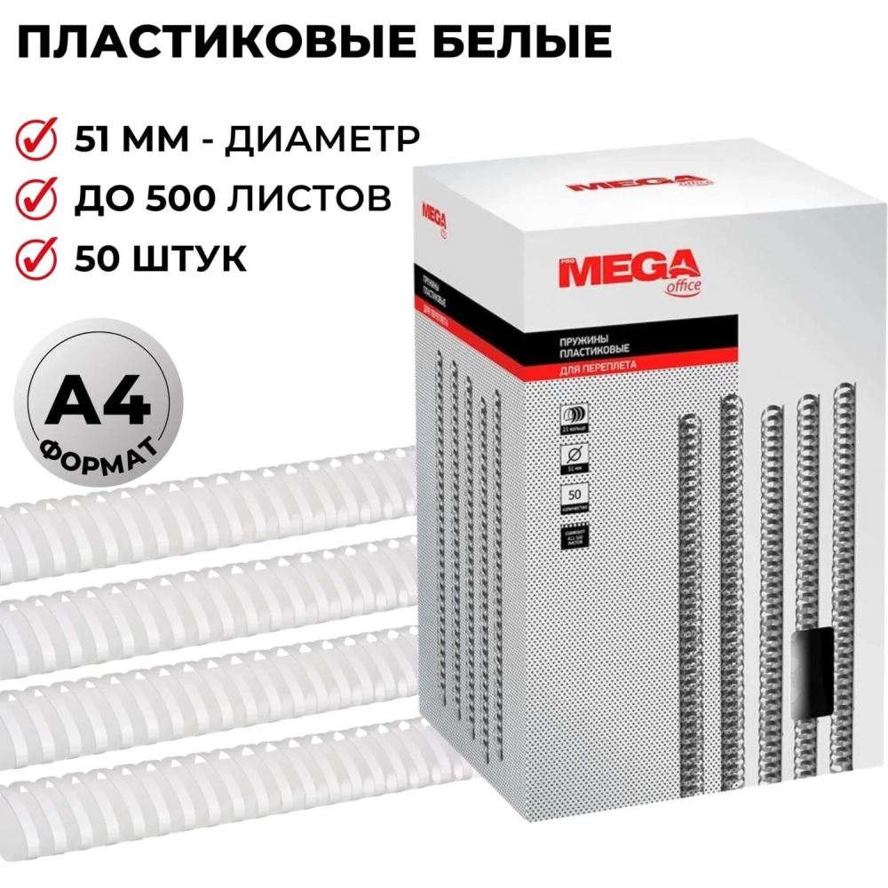 Пружины для переплета пластиковые 51мм белые 50шт/уп