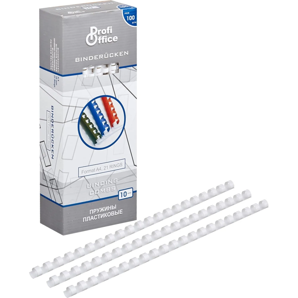 Пружины для переплета пластиковые ProfiOffice 10мм, белые 100шт/уп.