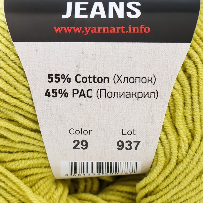 Пряжа "Jeans" 55% хлопок, 45% акрил 160м/50гр (29 яр. салат)