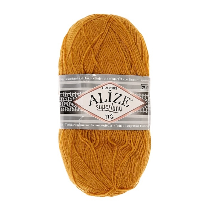 Пряжа "Superlana tig" 25% шерсть, 75% акрил 570м/100гр (02 шафран)
