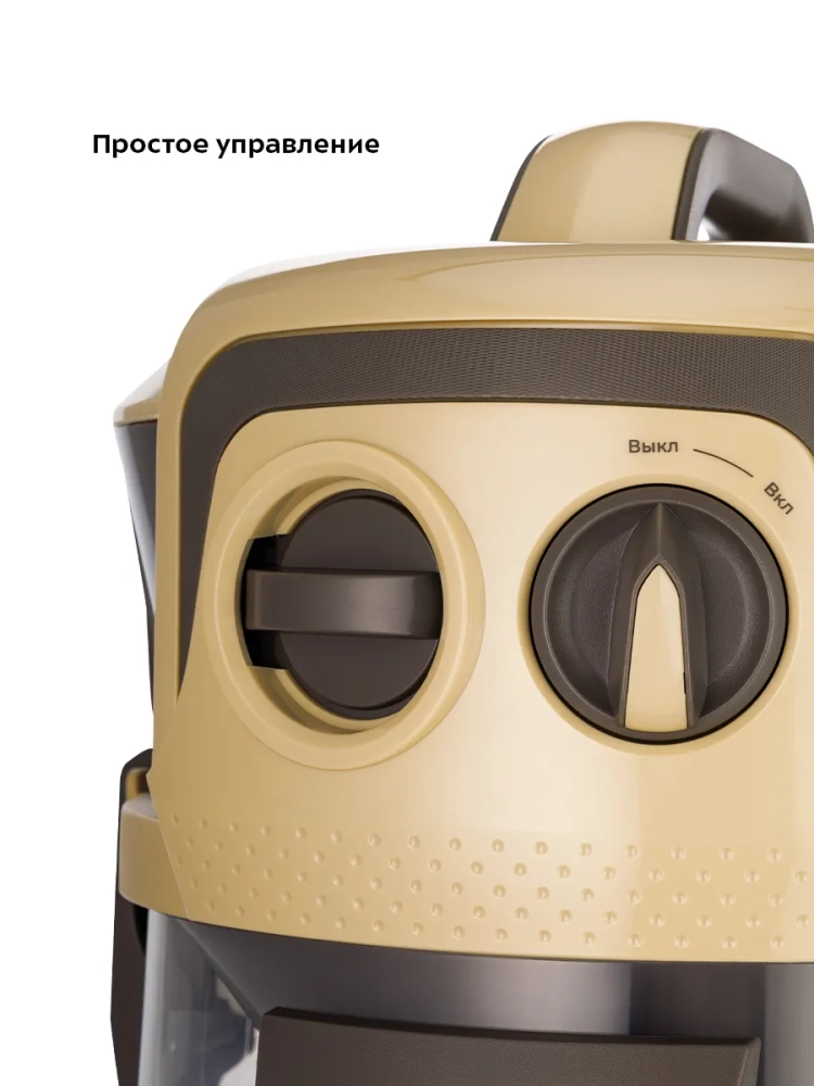 У пылесоса простое управление с помощью регулятора. Благодаря длинному шнуру питания можно убирать помещения большой площади.