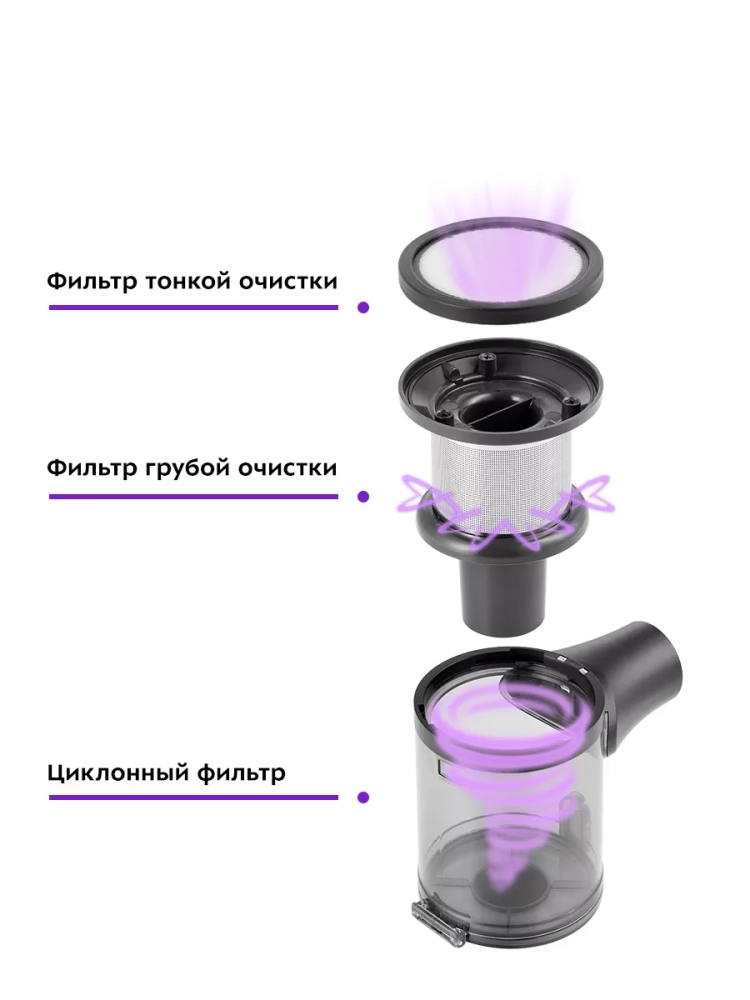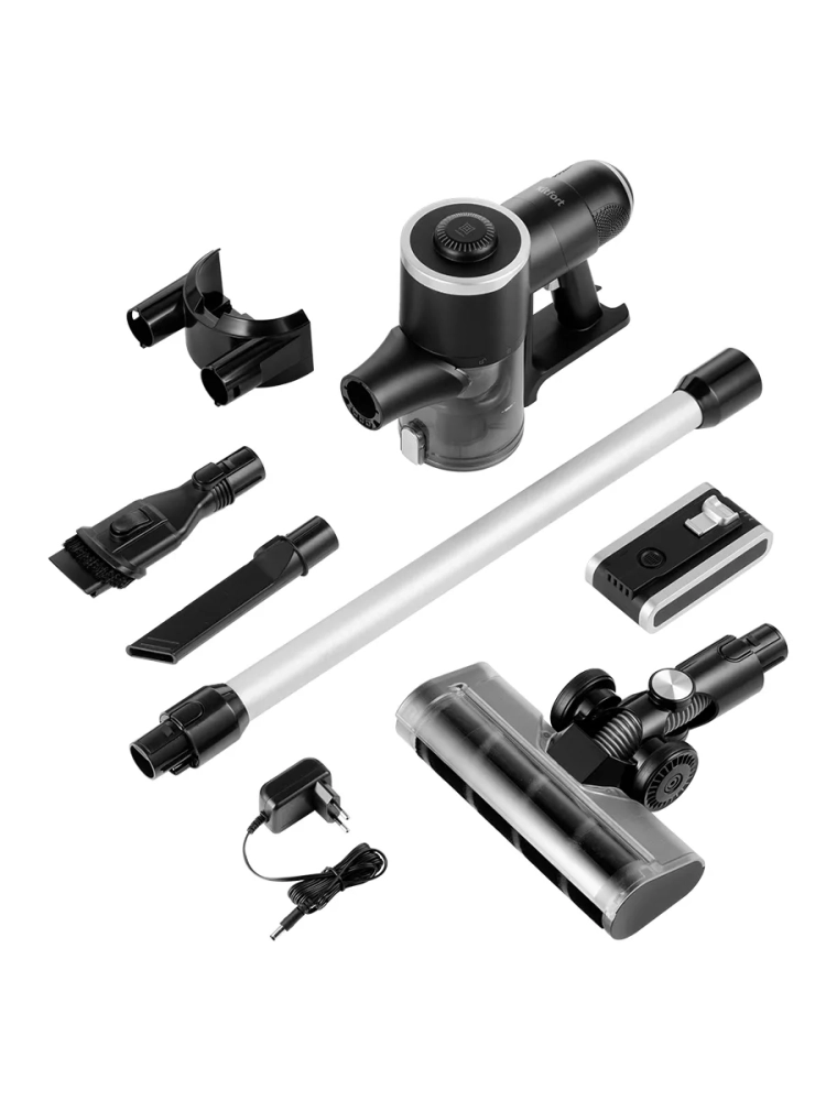 Пылесос комплектуется щеткой для пола, которая вращается в 2-х плоскостях. Щетка для пола оборудована турбощеткой, которая помогает качественно справиться с очисткой гладких поверхностей и ковровых покрытий с не очень длинным ворсом. Также к пылесосу прилагаются насадка 2 в 1 с ворсовой насадкой и щелевая насадка для удаления загрязнений из труднодоступных мест. Пылесос оборудован современной циклонной системой фильтрации, обеспечивающей постоянную мощность всасывания независимо от наполненности пылесборника. Пылесос можно использовать для уборки полов и ковровых покрытий, чистки мягкой мебели и салона автомобиля.