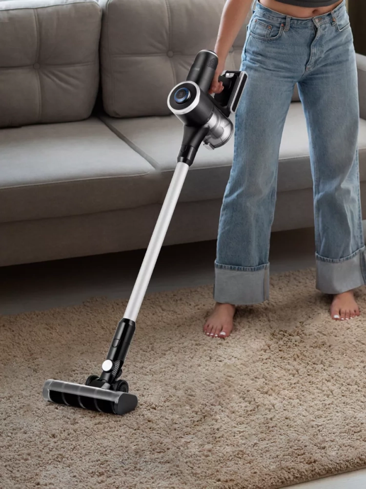 Пылесос имеет неограниченный радиус действия: от любого уголка квартиры до машины или беседки в саду. Пылесос оснащен маневренной напольной щеткой, которая вращается в двух плоскостях. Одно из главных достоинств вертикального пылесоса - его компактность. Во время работы пылесос благодаря своей маневренности может легко вписаться в узкий коридор или комнату, заполненную различными предметами. Для владельцев небольших квартир, которые сталкиваются с проблемой, где же хранить пылесос, приобретение этой модели будет оптимальным вариантом. Вертикальный пылесос хорошо подходит для оперативной уборки, например, рассыпанных крошек или песка от обуви в коридоре.