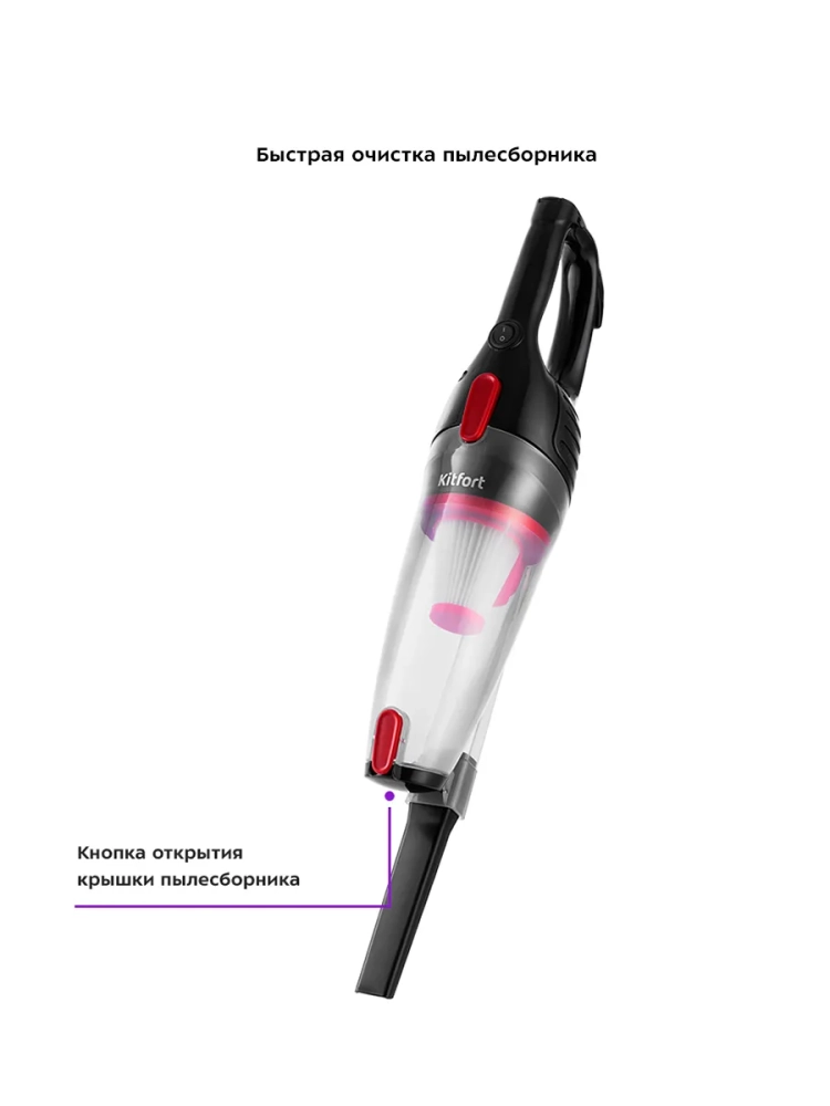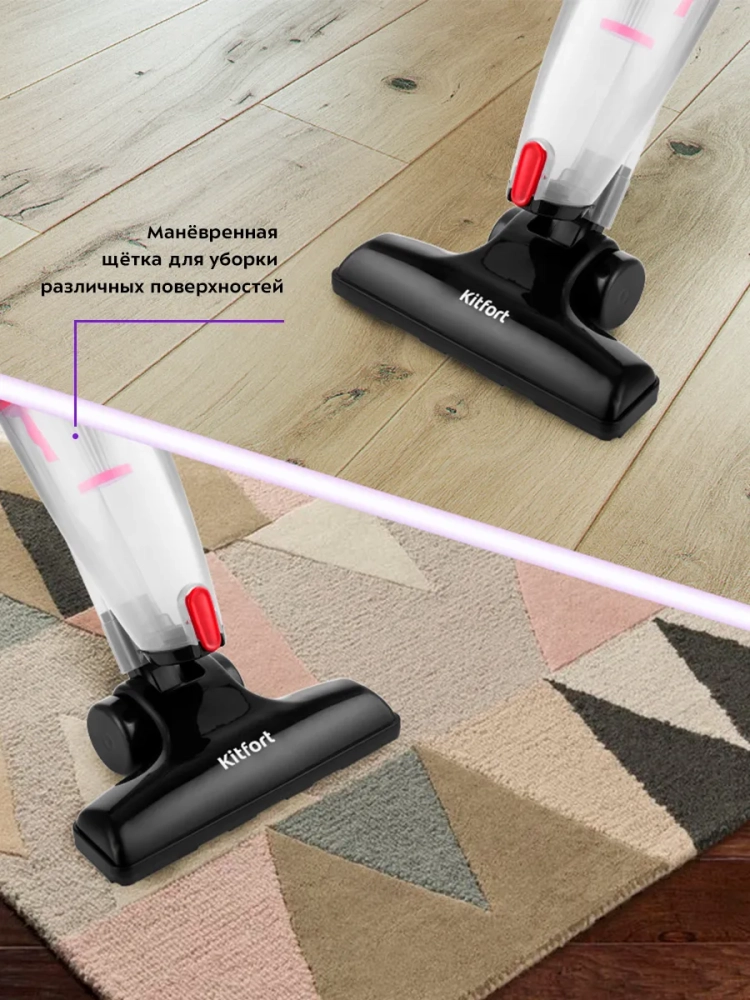 Вертикальный пылесос Kitfort КТ-597 удобен при локальной и генеральной уборке. Он компактен, всегда под рукой и готов к работе, а при желании он легко трансформируется в ручной пылесос. Утомительная уборка превращается в легкое и увлекательное занятие, а время уборки сокращается вдвое.