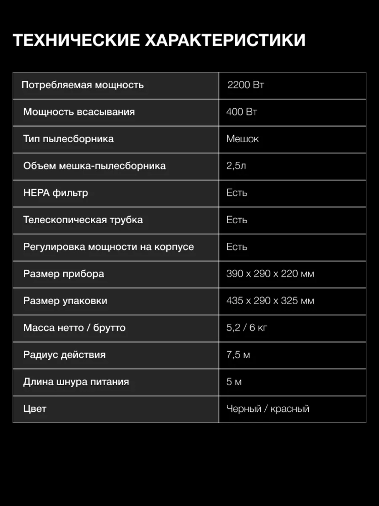 Пылесос HYV-B4995 2,5л 2220Вт черный