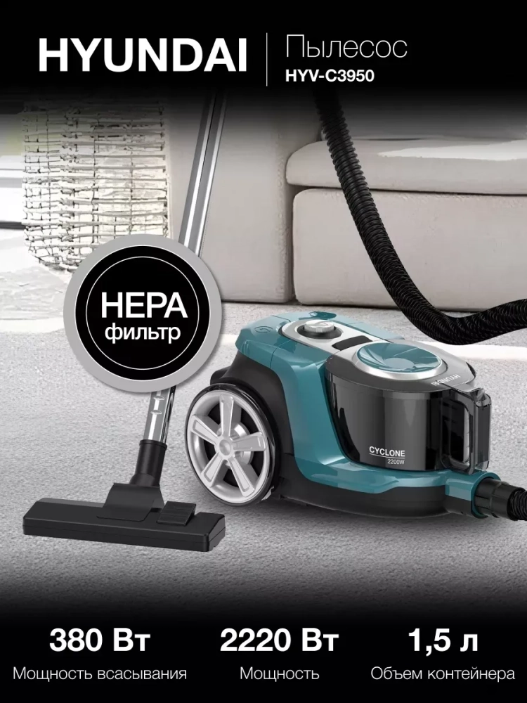 Мощный и удобный пылесос HYUNDAI NYV-C3950 для безупречной уборки.