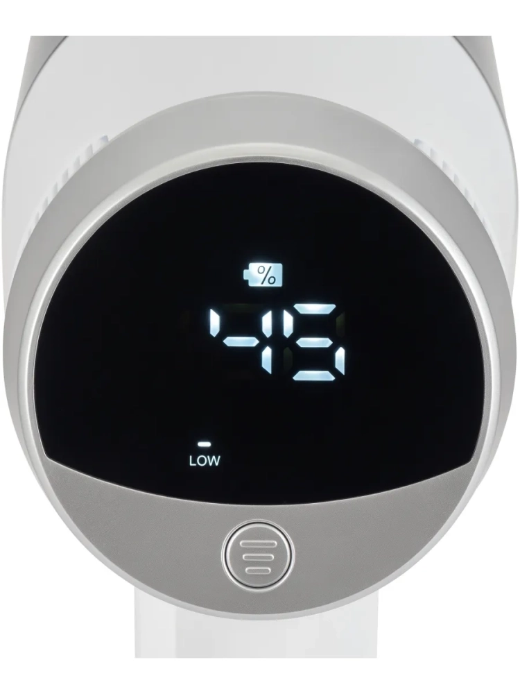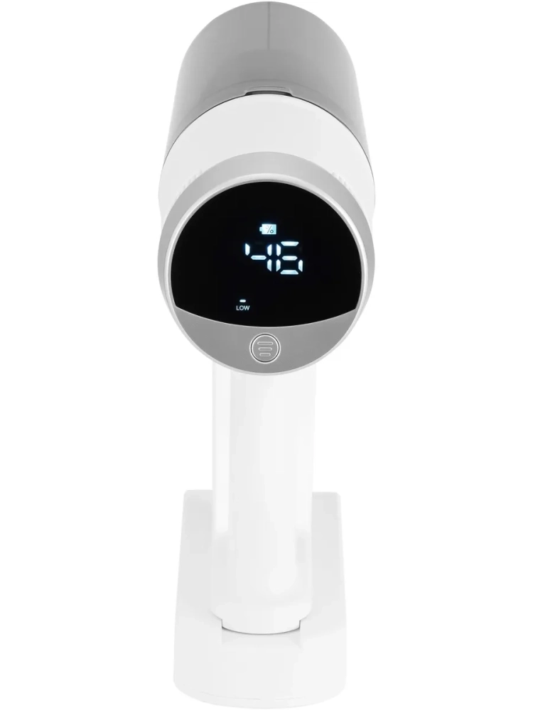 Управление интуитивно понятно и оснащено системой световой индикации, которая отображает режим работы, степень заряда и предупреждает о возможных застреваниях. Для удобства хранения предусмотрено настенное крепление. Корпус выполнен в стильном белом цвете с серебристыми акцентами.
