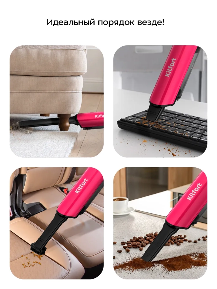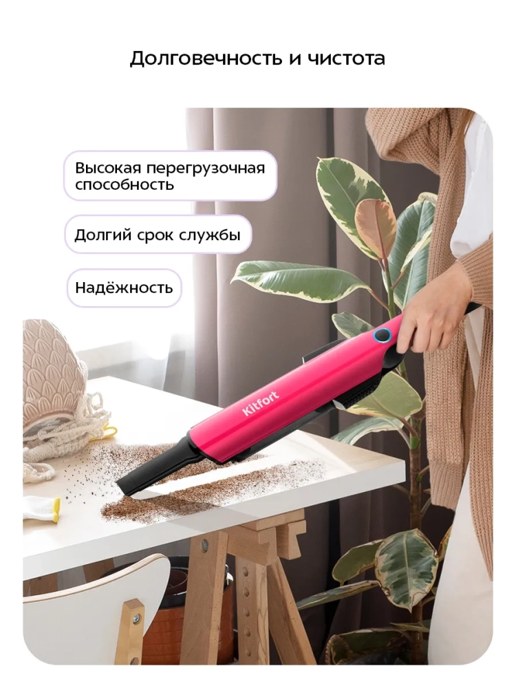 Ручной пылесос Kitfort КТ-5394 — это портативное и компактное устройство, которое легко справится с пылью и мусором. Благодаря работе от аккумулятора пылесос имеет неограниченный радиус действия: от любого уголка квартиры до машины или беседки в саду. Небольшие габариты и малый вес пылесоса делают процесс уборки простым и удобным. Подсветка очищаемой зоны сделает уборку комфортной даже в затемненных местах.