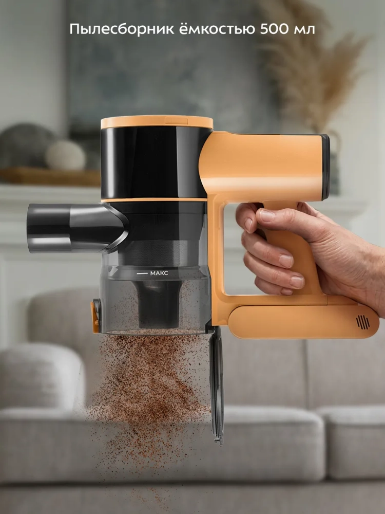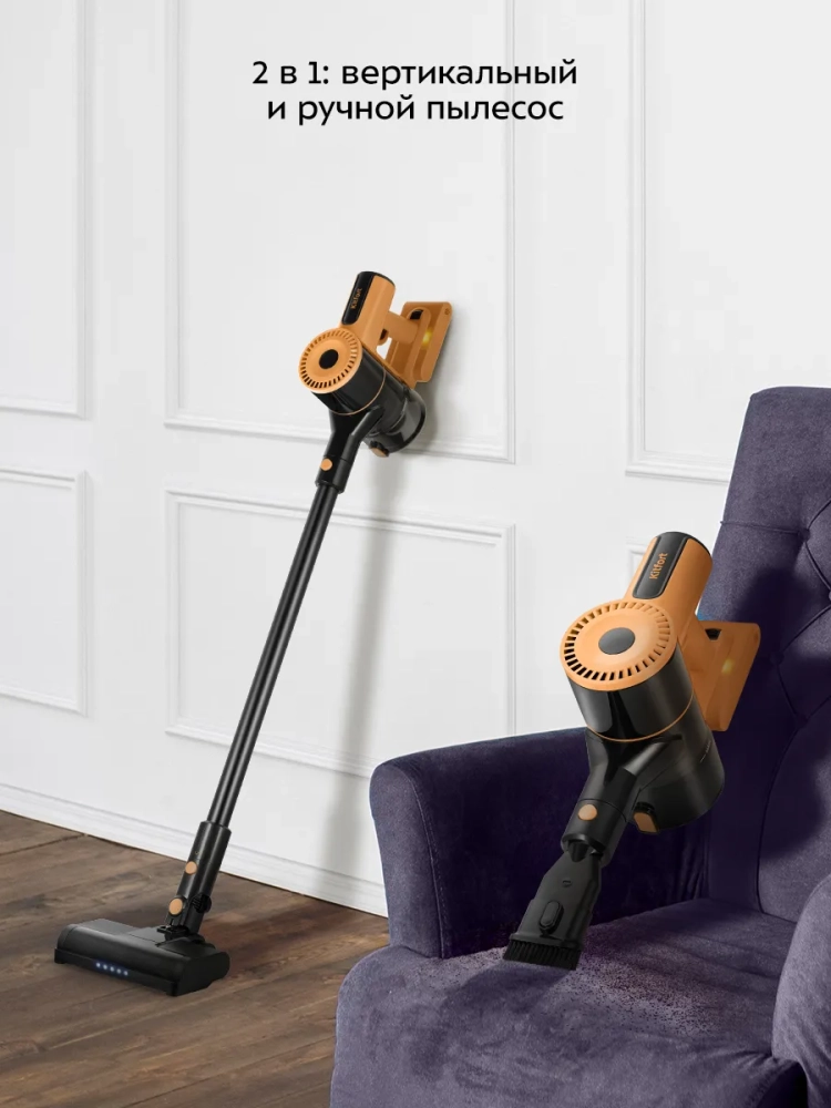 Конструкция «2 в 1» предусматривает наличие ручного пылесоса. Ручным пылесосом можно пропылесосить углы и плинтусы, обивку мебели, пыль со шкафов на кухне или в гостиной, книжные полки, коврики в автомобиле или багажник.