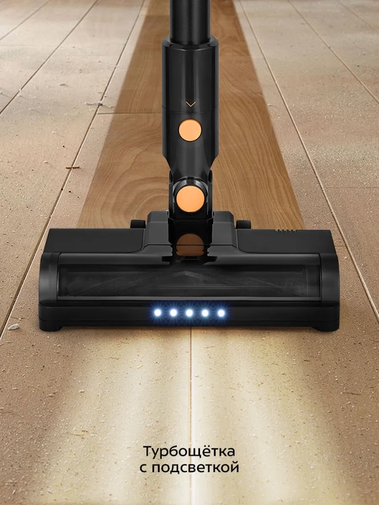 Беспроводной вертикальный пылесос Kitfort КТ-5233 очень удобен для проведения локальной и генеральной уборки. При отсоединении удлинительной трубки и установке насадки он превращается в ручной пылесос. Благодаря работе от аккумулятора не нужно включать вилку в розетку, а провода не мешают движению. Пылесос оснащен маневренной турбощеткой для пола. Она имеет подсветку и вращается в двух плоскостях.