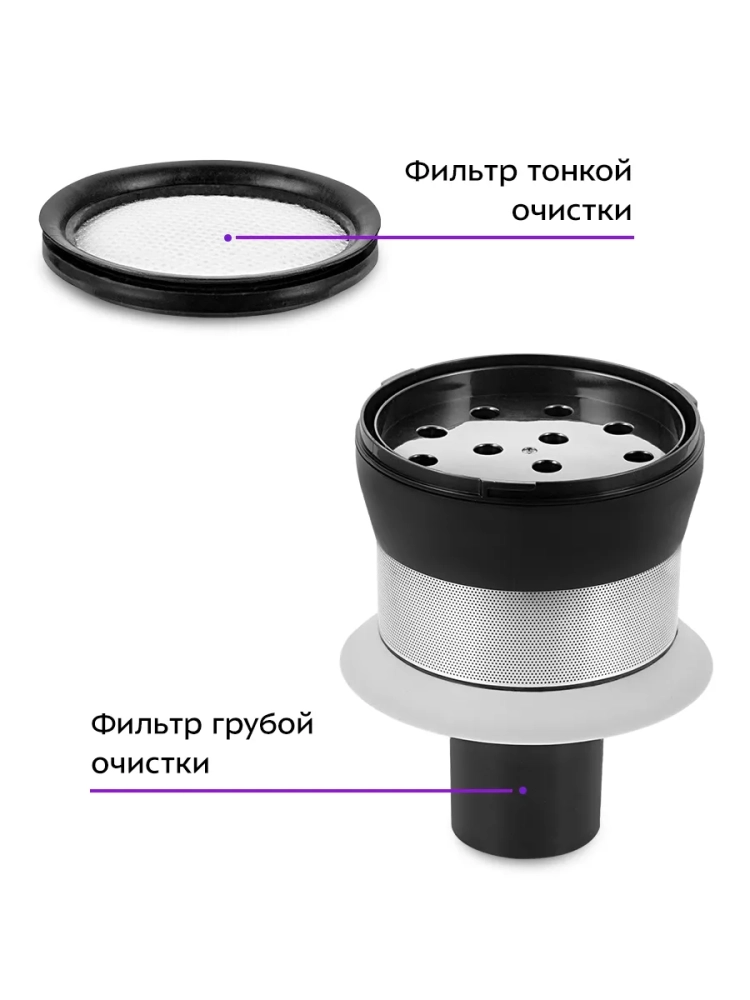 Пылесос оборудован современным циклонным фильтром, обеспечивающим хорошую очистку. Пыль из пылесборника вытряхивается очень просто. В пылесборнике установлены фильтр грубой очистки и фильтр тонкой очистки, которые задерживают частички пыли. Фильтры можно с легкостью вытащить и очистить.