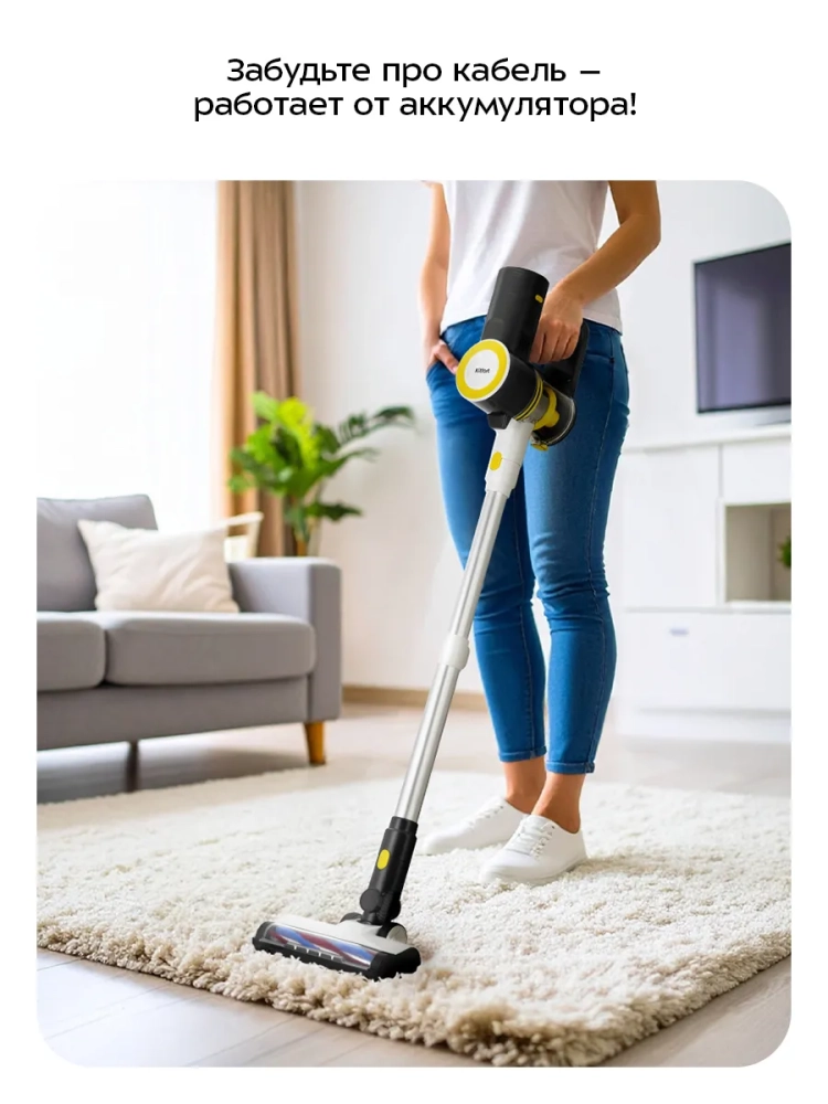 Пылесос вертикальный беспроводной для дома КТ-5310 (2 в 1)