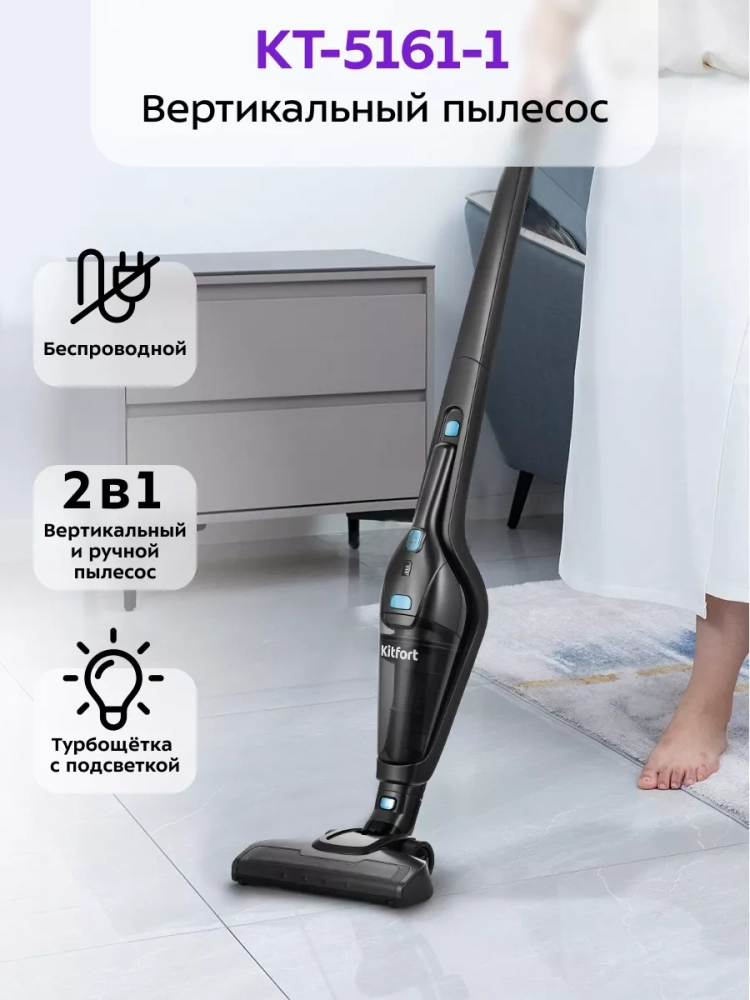 Пылесос вертикальный беспроводной КТ-5161 (2 в 1) 120 Вт