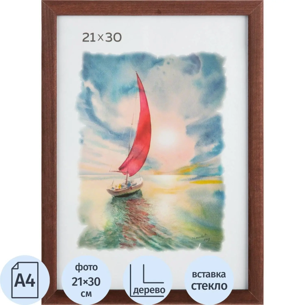 Рамка А4(21х30) темный деревянный багет, настенная
