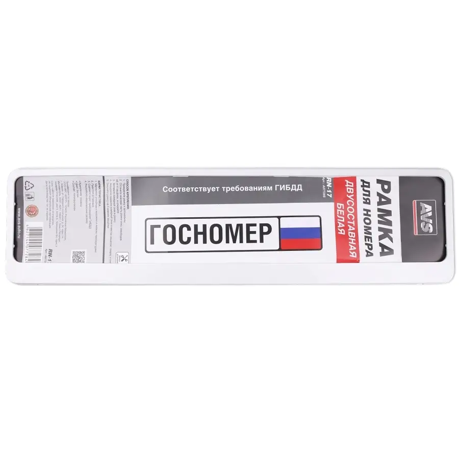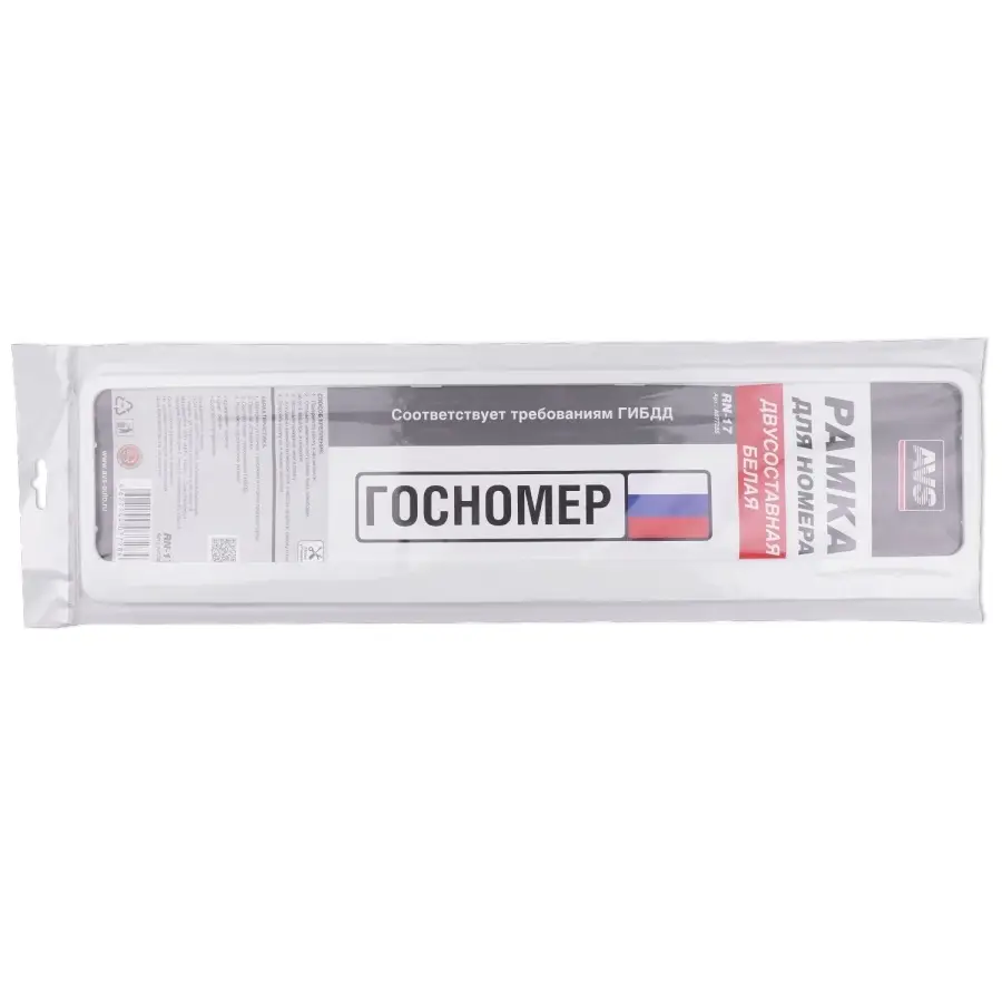Рамка под номерной знак двусоставная (белая) AVS RN-17