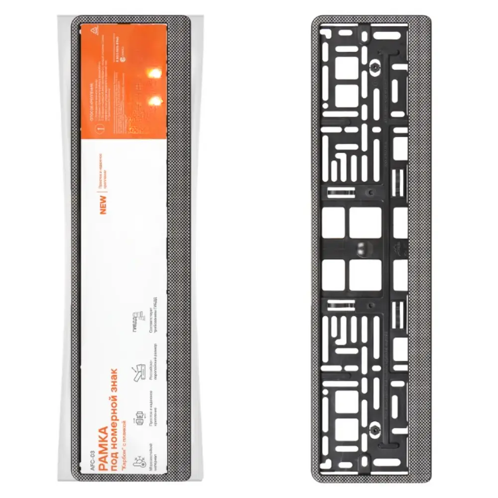 Рамка под номерной знак серии «карбон» от AIRLINE представляет собой отличное соотношение цены и качества товара. Рамка изготовлена из прочных морозостойких материалов и отвечает всем требованиям, предъявляемым отечественным ГИБДД. Для более надежного крепления номерного знака предусмотрена планка, более надежно фиксирующая его. Рамка устанавливается на бампер автомобиля с помощью запорной планки.