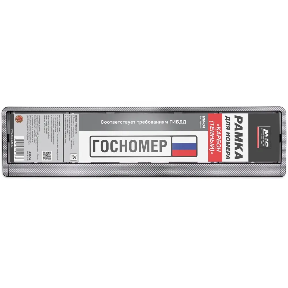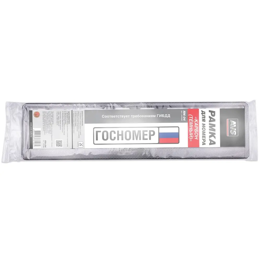 Рамка под номерной знак "карбон (тёмный)" AVS RN-04