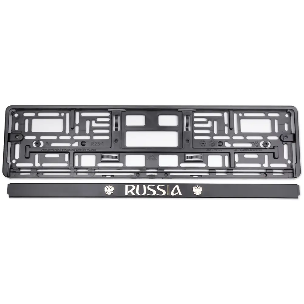 Рамка под номерной знак книжка, рельеф "Russia" (чёрный, золото) AVS RN-09