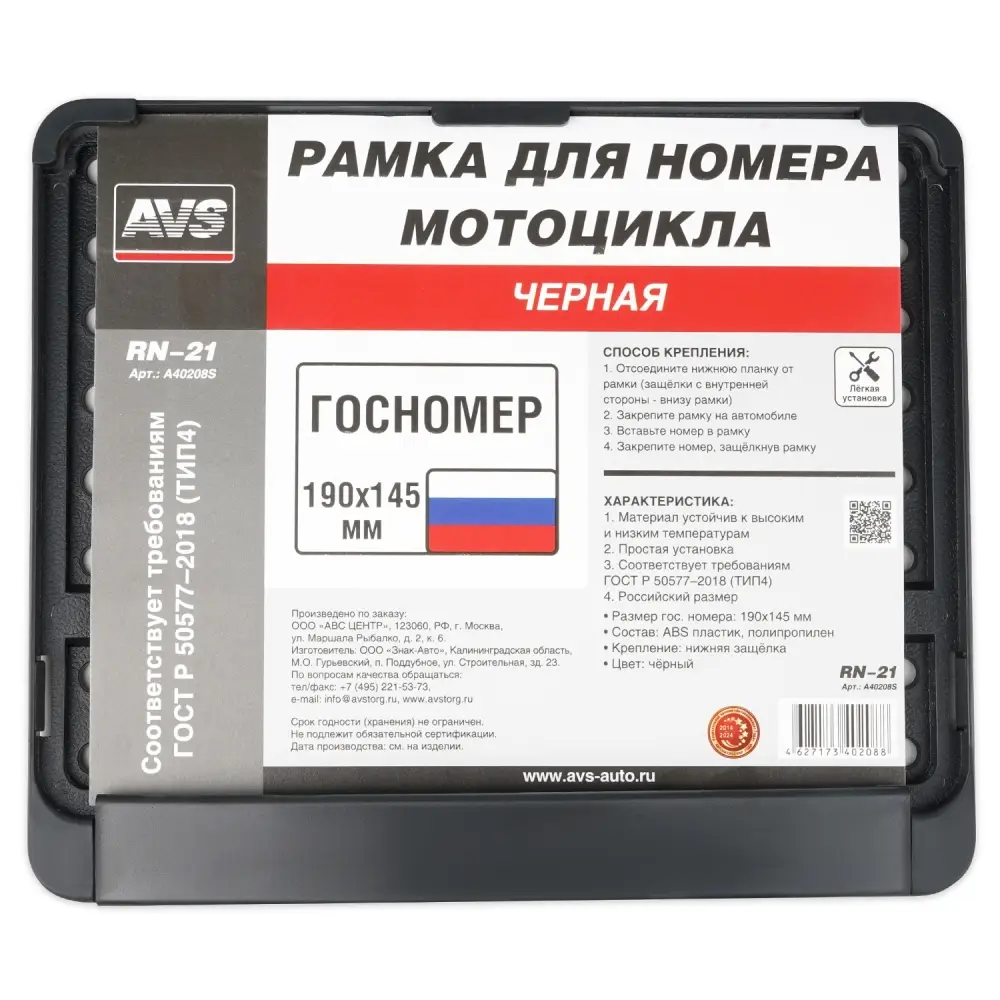 Рамка под номерной знак мотоцикла (чёрная) ТИП4 190х145 мм AVS RN-21